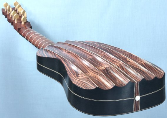 Brazilian kingwood back ribs, ebony sides, bubinga neck and peg head